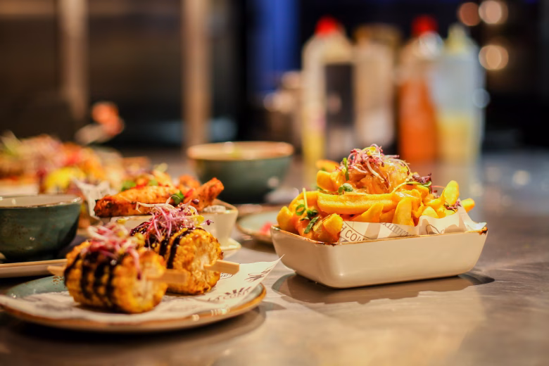 De menukaart biedt een mix van klassiek comfort food en gerechten met een twist. ‘Neem bijvoorbeeld de Afghaanse rijst, een gerecht dat je niet snel op andere menukaarten zult tegenkomen, maar die echt indruk maakt’, zegt Huizing. ‘Als gasten het eenmaal hebben gegeten, blijven ze het maar bestellen. Die rijst is gewoon altijd goed’. Naast de rijst staan er loaded fries op de kaart. Dit zijn frietjes met een rijke kaassaus en een extra bite. De truffelfriet is een ander voorbeeld. ‘Die zie je tegenwoordig overal, maar wij hadden het al vijf jaar geleden op de kaart staan,’ vertelt Huizing trots.